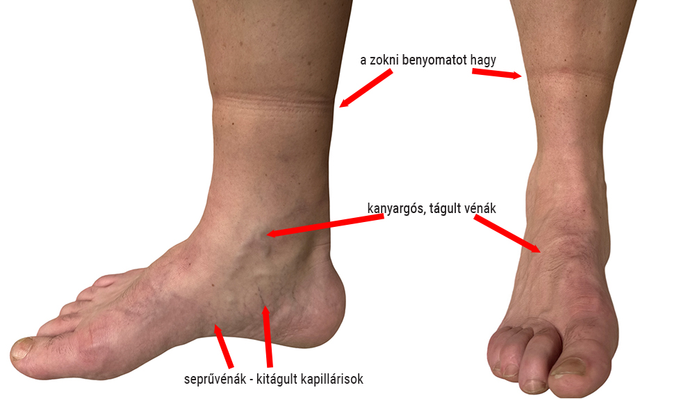 - Opuch: Prvým známym prejavom je, že lem ponožky zanechá „ryhu“ v koži. Chodidlo a prsty, dokonca členky a predkolenie môžu byť edematózne.
